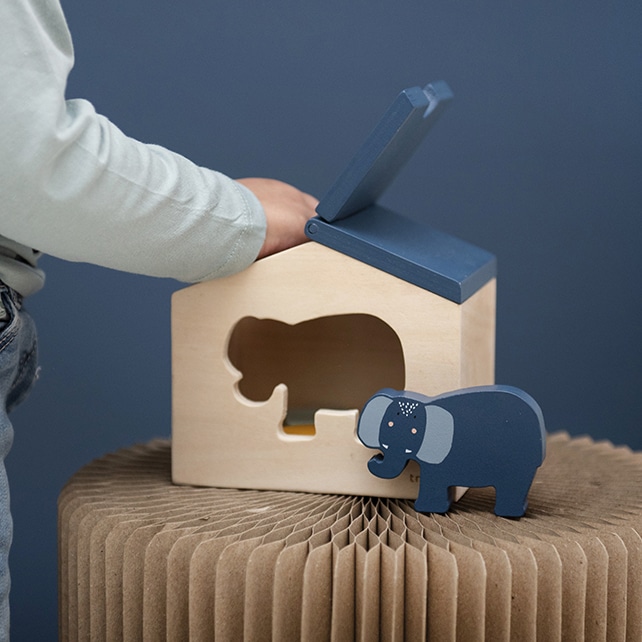 Houten speelgoed van Trixie vind je bij Kadomino. De houten vormenstoof olifant van Trixie is gemaakt van verantwoord materiaal en is de perfecte manier om de fantasie van een kind de vrije loop te laten! De olifant ontvangt je graag in zijn gezellige stekje! De houten vormenstoof wordt geleverd met een vorm van een houten olifant en drie vormen speelblokken. Dit schattige huisje garandeert urenlang fantasierijk vrij spel. Je kan het dak openen om alle blokjes in het huis van het dier op te bergen. Een mooie kwaliteit hout zonder scherpe randen en/of te kleine onderdelen. Dit product is gemaakt van hoogwaardig 100% FSC © gecertificeerd beukenhout. Alle verven zijn op waterbasis en veilig voor baby’s