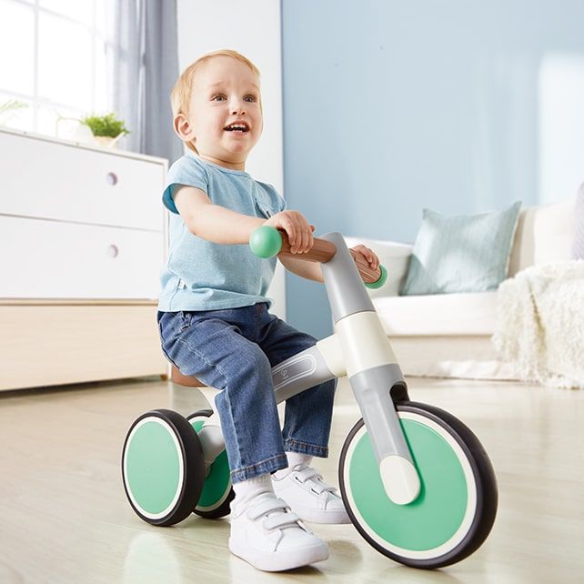De Hape peuter loopfiets groen is een stoere loopfiets die de kleintjes aanmoedigt om de grove motoriek, snelheidsbewustzijn en balans te verkennen. De loopfiets heeft soepele wielen en een gemakkelijk te manoeuvreren stuur. De peuter loopfiets is licht in gewicht, is duurzaam en heeft geen pedalen. Kan zowel binnen- als buitenshuis gebruikt worden.
