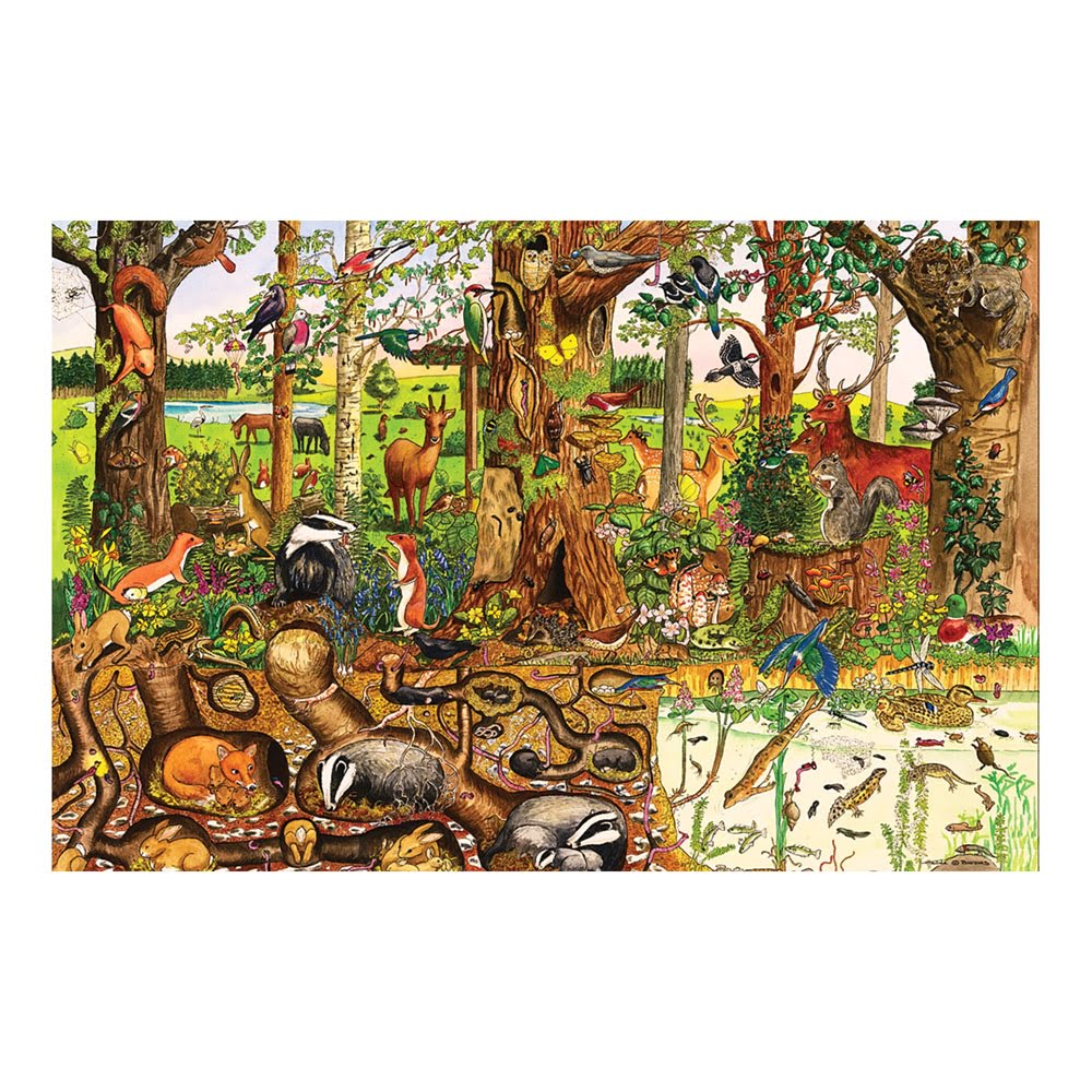 Bigjigs heeft mooie houten puzzels en spellen in haar assortiment. Een vloerpuzzel bos Bigjigs met afbeeldingen van het bos. Er is echt van alles te zien in het bos, zelfs onder de grond. Prachtige afbeeldingen en zeer educatief om kinderen zo te laten zien welke dieren er in en om het bos leven. De puzzelstukken zijn gemaakt van mooi gebeitst hout in mooie aardkleuren. Echt een aparte puzzel die je niet overal ziet!