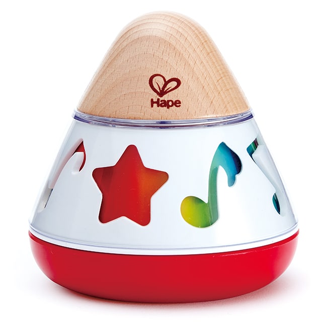 Webwinkel Kadomino heeft mooie houten muziekdoosjes in haar assortiment. Dit wiebelend muziekdoosje met slaapdeuntje is van het prachtige speelgoedmerk Hape. Een wiebelend muziekdoosje dat steeds verandert van kleur. Wind het muziekdoosje op door te draaien aan het rode voetstuk. Het wiebelende muziekdoosje is gemaakt van gebeitst hout in vrolijke kleuren. Prettig om bij in slaap te vallen. Of in de ochtend lekker wakker worden met een vrolijk deuntje.